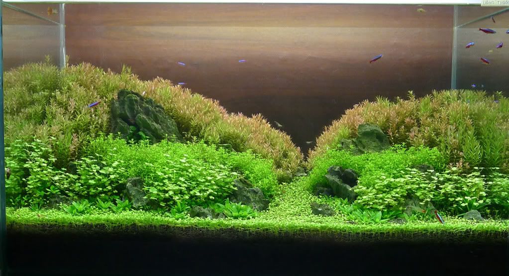 - Cây: xương cá + ngổ bò + trân châu nhật + rau thơm + ít rêu java + sao nhỏ + ngưu mao chiên